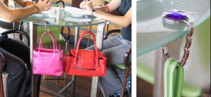 - Nawa3em® Purse Hangers - Protect your purse from dirty floors and thieves by hanging it right next to you on the table... but most importantly, these Foldable Purse Hangers "look COOL and FABULOUS" with subtle bling effect. Our beautiful, trendy and lightweight purse hangers offer peace of mind and a nice companion accessory to your purses no matter where you go. They are engineered to support up to 15 pounds so that they can hold purses and handbags for all occasion. Each purse hanger comes with a velvet pouch which is stored behind the holding tray inside a beautiful gift box. It will certainly make a great gift!