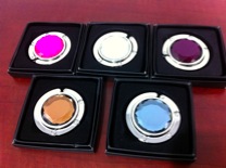 Nawa3em Purse Hangers: Protect your purse from dirty floors and thieves by hanging it right next to you on the table... but most importantly, these Foldable Purse Hangers "look COOL and FABULOUS" with subtle bling effect. Our beautiful, trendy and lightweight purse hangers offer peace of mind and a nice companion accessory to your purses no matter where you go. They are engineered to support up to 15 pounds so that they can hold purses and handbags for all occasion. Each purse hanger comes with a velvet pouch which is stored behind the holding tray inside a beautiful gift box. It will certainly make a great gift!